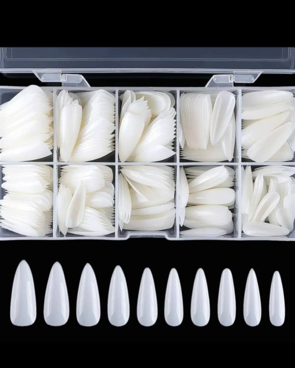 Long Stiletto Nail Tips Natural White full cover